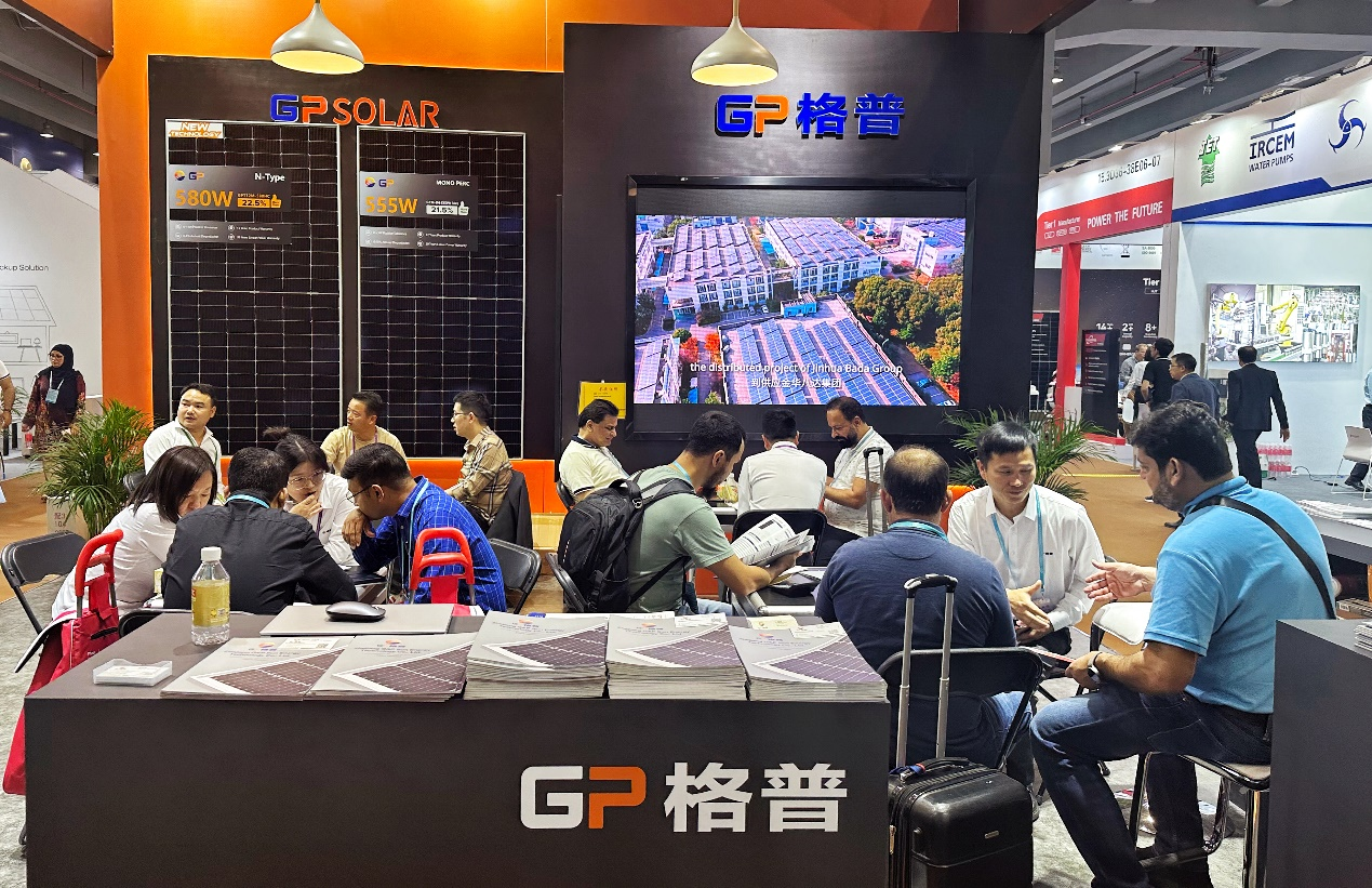 除了全系列组件产品,格普光能还介绍了项目开发建设、光储充一体化等全面的业务布局,系统化、专业化、智能化的解决方案吸引了海内外经销商、开发商等客户前来洽谈。格普光能专业的销售和技术团队与客户热情交流,现场氛围热烈非凡。